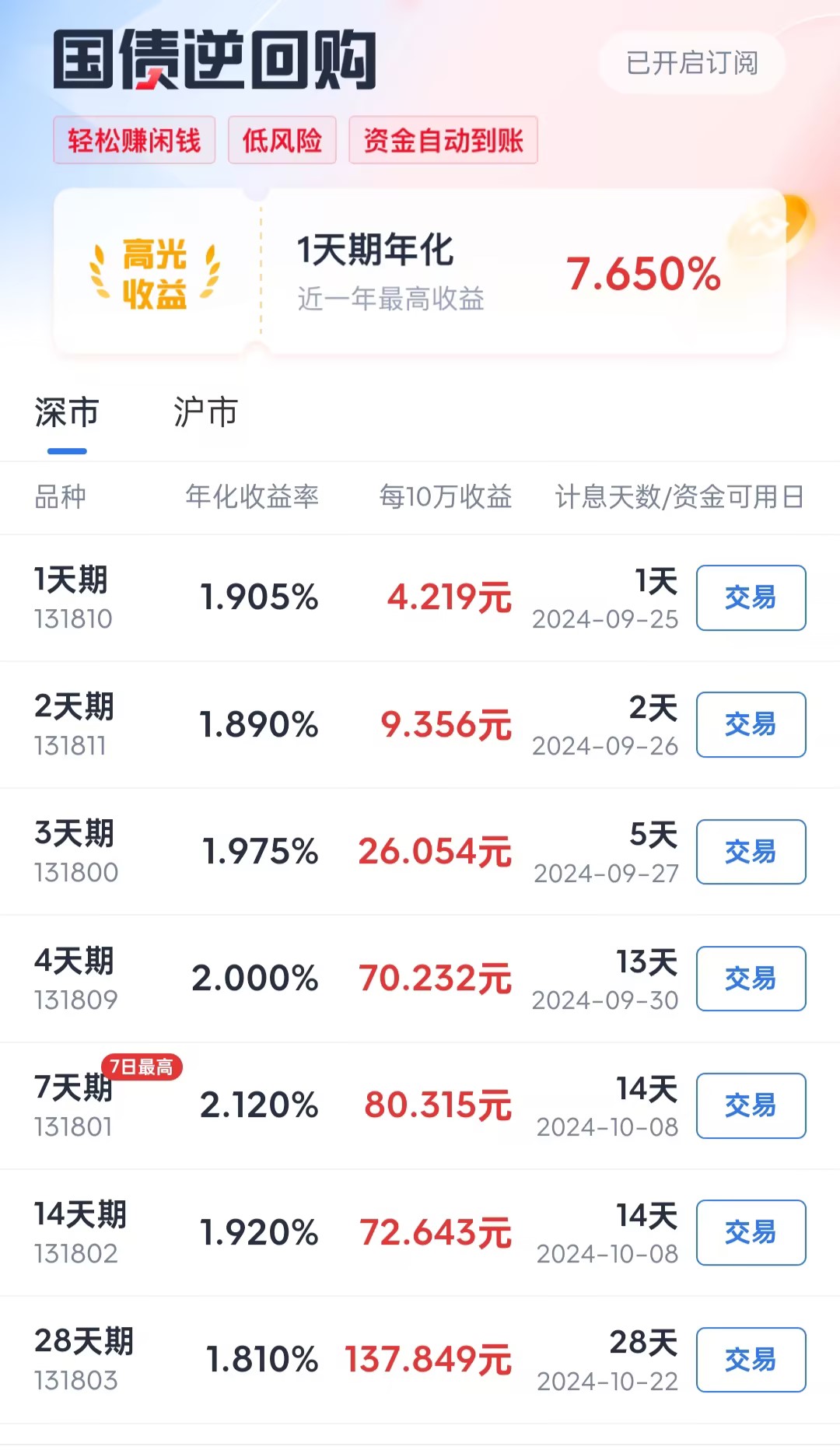 注意:如果9月30日(星期一)买入一天期国债逆回购,资金10月8日到账,可用不可取,10月9日可以取出,实际占有1天,只享受1天利息,不享受假期收益。