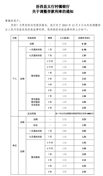 3、汾西县太行村镇银行