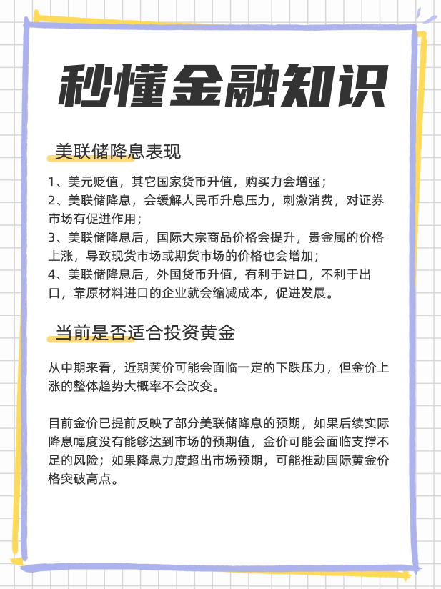 3、美联储降息后美元贬值,国际大宗商品价格会有所提升,贵金属的价格就会上涨,从而导致现货市场或期货市场的价格也会增加;