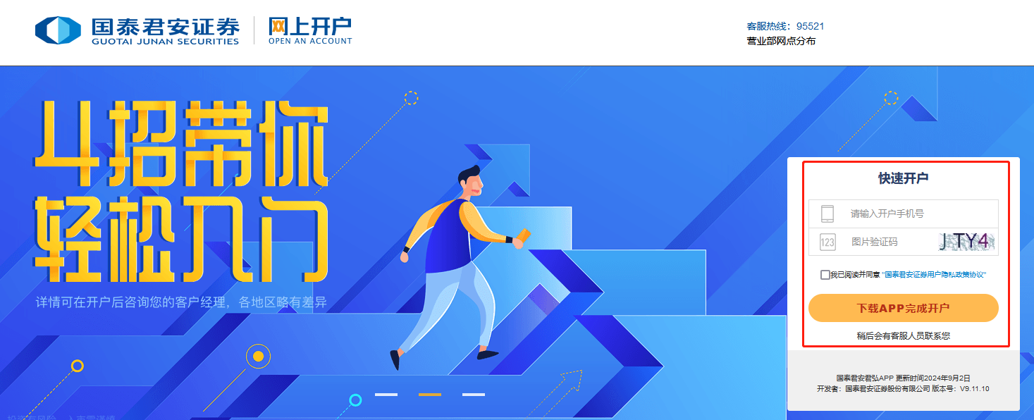开户流程:上传身份证——填写个人资料——完成风险测评——设置密码——开通股东账户——签约三方存款银行——视频验证——接通回访电话。